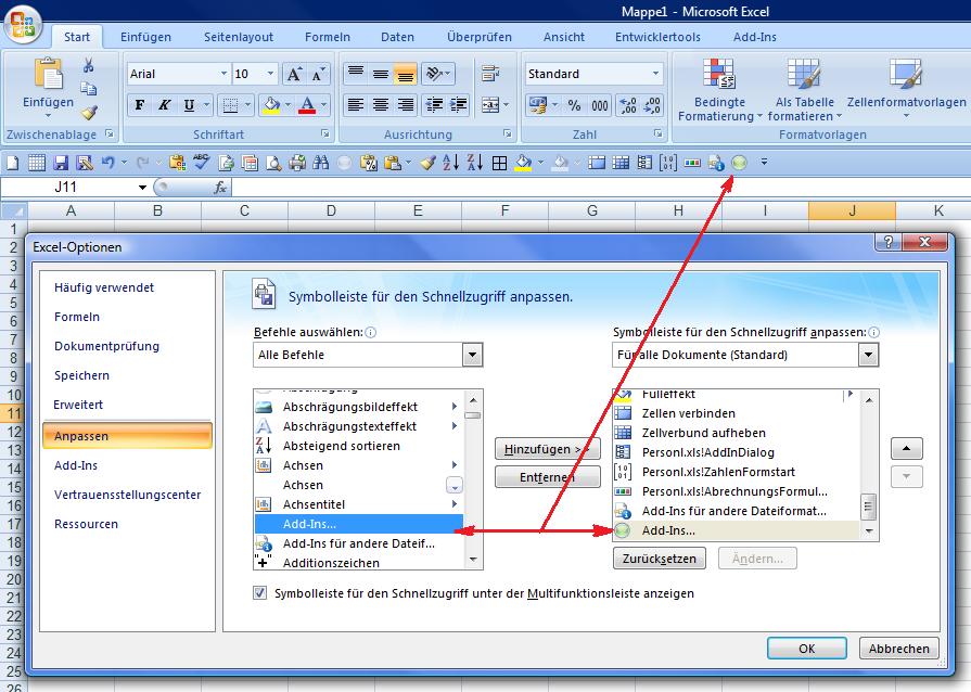 AddIns - Dialog in Excel 2007 direkt über Schnellstartleiste aufrufen |